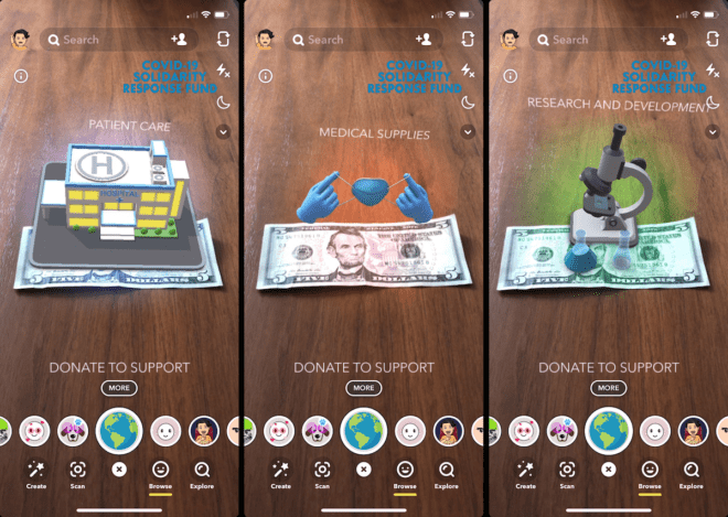 Les Snapchatters peuvent scanner 23 billets de 33 pays différents depuis l’appareil photo Snapchat. Cela permet de visualiser en réalité augmentée l’impact des dons sur les efforts déployés par l’Organisation mondiale de la Santé pour surveiller la propagation du COVID-19. À ce jour, plus de 445 Stories ou Émissions de la rubrique Découvrir traitent du COVID-19 et plus de 68 millions de Snapchatters du monde entier ont consulté des contenus liés au COVID-19 sur Snapchat. Aux États-Unis, plus de 40 % de la génération Z consulte ce support pour se tenir informé.