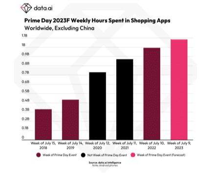 En 2023, la semaine du Prime Day devrait être le plus grand événement du milieu de l'année, avec une augmentation de 9 % du temps passé d'une année sur l'autre, alors que les marques lancent des ventes concurrentes.