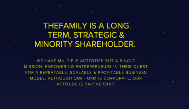 Initialement,TheFamily a voulu prendre une petite participation (actionnaire minoritaire dans des dizaines de start-up et de leur fournir des conseils et des connexions et miser sur le long terme !)