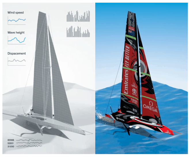 L’utilisation d’un jumeau numérique aux premiers stades du développement d’Emirates Team New Zealand aurait entraîné une réduction d’au moins 95 % du coût des tests de la conception. Le partenaire de formation a longtemps été le principal instrument de mesure, ou contrôle, par lequel les équipes évaluent les performances et orientent leurs choix de conception. La Coupe est une compétition féroce, entourée de discrétion à l’extrême et les équipes n’ont pratiquement pas de temps d’entraînement dans leurs bateaux finaux, car elles doivent intégrer autant de développement de conception que possible dans leurs machines de course.
