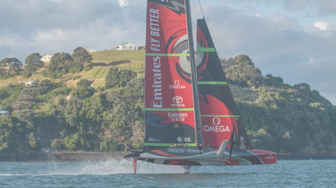 Les foils sont des appendices latéraux élevant la coque au-dessus de l’eau, qui permettent d’atteindre des pointes de vitesse de plus de 40 nœuds.