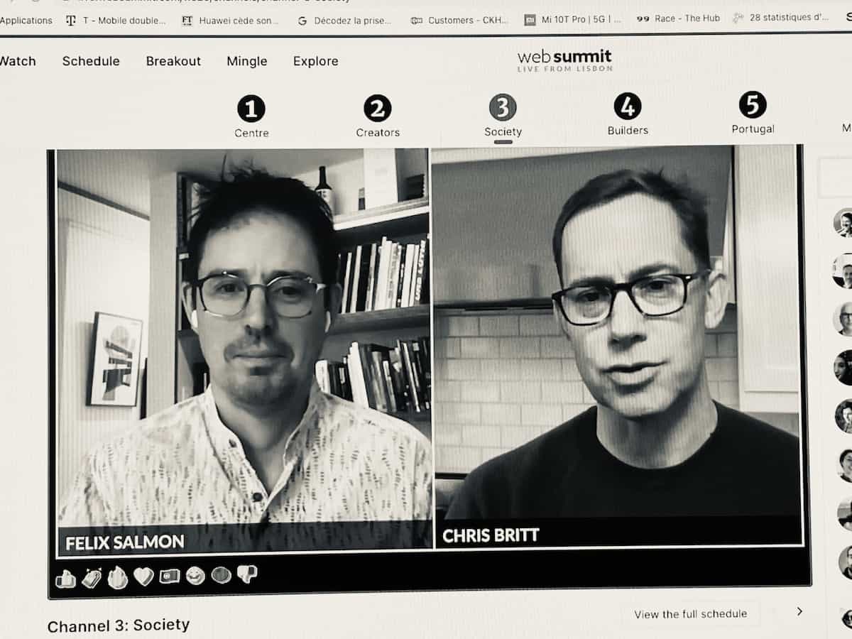 En tout cas, la plate-forme Web mise en place et le travail des équipes du WebSummit sont phénoménaux, le résultat prouve qu’il est possible de réussir un événement virtuel en attendant la fin potentielle du Covid-19. La plate-forme web propose 5 salles avec un programme (Plus de 100 heures de contenu diffusé en direct) aussi soutenu que l’année dernière, de nombreuses conférences aussi chez les partenaires. Seule différence de taille, c’est que l’on rentre dans les foyers des speakers, c’est parfois bizarre 🙂